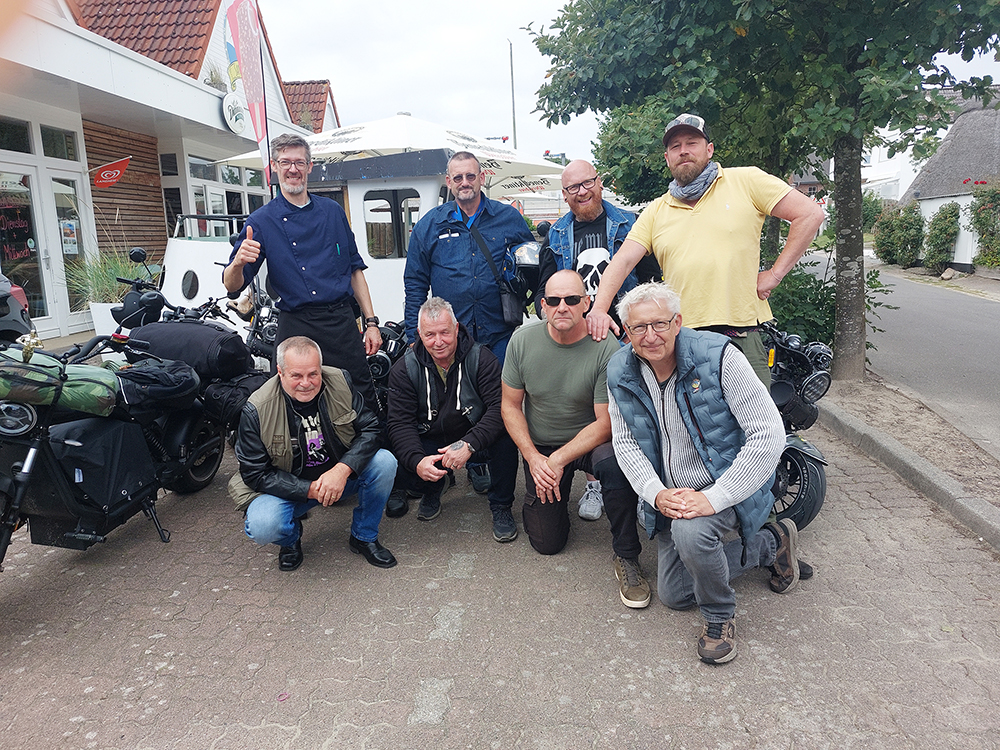 Das Wetter spielte mit, so das wir auch für unsere Zwecke tolle Fotos machen konnten. Und ihr kennt das ja - der Spaß dabei kam nicht zu kurz. Cool war natürlich auch der kurze Tripp rüber nach Büsum, mit 4 Choppern in Kolonne hatten wir die Aufmerksamkeit schnell auf uns gezogen. Es folgten Fragen, die ihr alle kennt ;-)