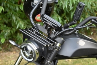 Wer jetzt knatternde Auspuffgeräusche und Gummi auf den Straßen erwartete, wurde enttäuscht. Tatsächlich erinnern die Zweiräder mit der lang gezogenen Gabel und dem dicken Hinterrad optisch einer Harley, aber das war es auch schon, denn da fehlt etwas unter dem geschwungenen Tankdesign: Der Motor. Und so war ein Surren und die leisen Reifen alles, was man im Fahrbetrieb bis ca. 50 km/h zu hören vermochte.