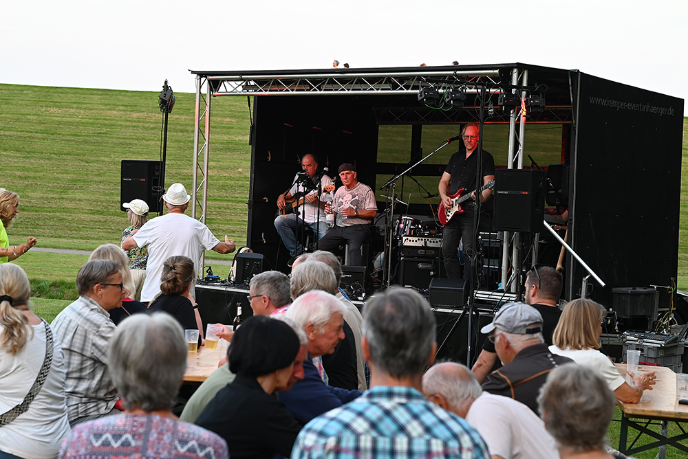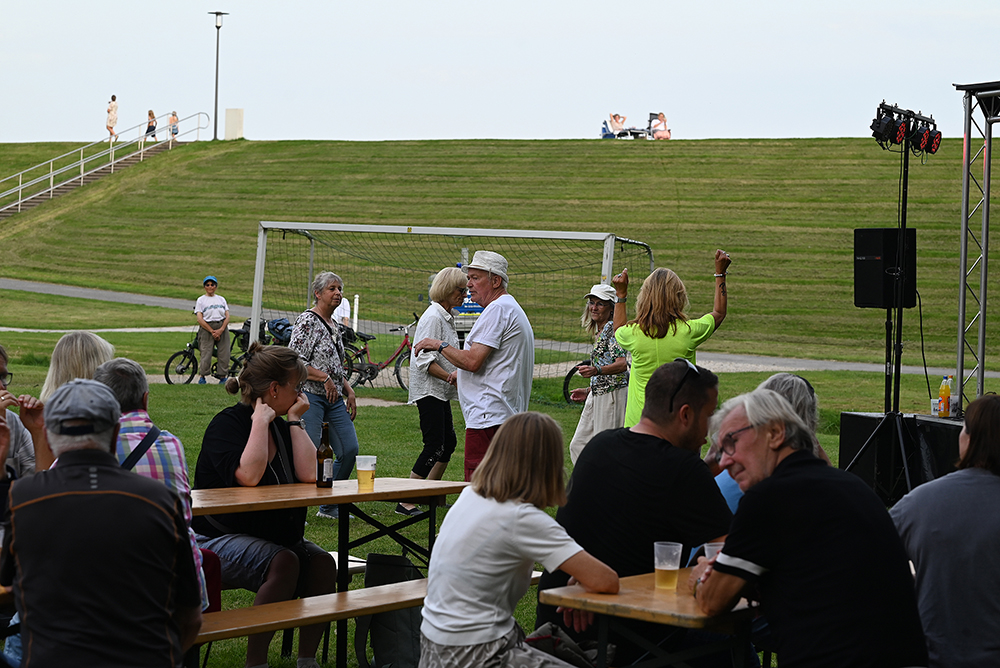 Am letzten Donnerstag hatten wir an der Location, wo wir auch an Tag 1 zusammenkommen, ein Konzert mit der Band "Lebendig" aus Gießen. Eine wirklich tolle Kulisse. Bei uns wird "Crank it up" eine super Coverband aus Hamburg für Stimmung sorgen. Wir denken, das wird ein ganz toller Tag und ein tolles Treffen, bei dem ihr ein paar schöne Eindrücke mit nach Hause nehmen werdet. Hier ein paar Eindrücke von dem Abend (by Norbert Fock). Hinter dem grünen Ding (Deich) ist übrigens gleich die Nordsee und der Strand: